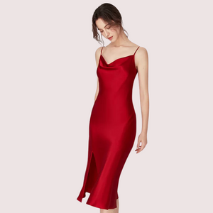 Care Instructions: To maintain the quality and longevity of this silk satin nightdress, it is recommended to follow the care instructions provided by the manufacturer. Generally, hand washing in cold water with a mild detergent is advisable. Avoid wringing or twisting the fabric; instead, gently press out excess water and lay flat to dry away from direct sunlight. If ironing is necessary, use a low heat setting and place a cloth between the iron and the silk to prevent damage.